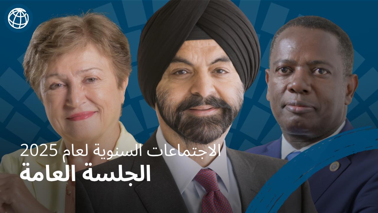 يتحدث كل من رئيس الاجتماعات السنوية أولافو أفيلينو غارسيا كوريا (نائب رئيس الوزراء ووزير المالية في كابو فيردي)، ورئيس مجموعة البنك الدولي أجاي بانغا، والمدير العام لصندوق النقد الدولي كريستالينا غورغييفا في الجلسة العامة للاجتماعات السنوية في واشنطن العاصمة بتاريخ 17 أكتوبر/تشرين الأول، 2025.