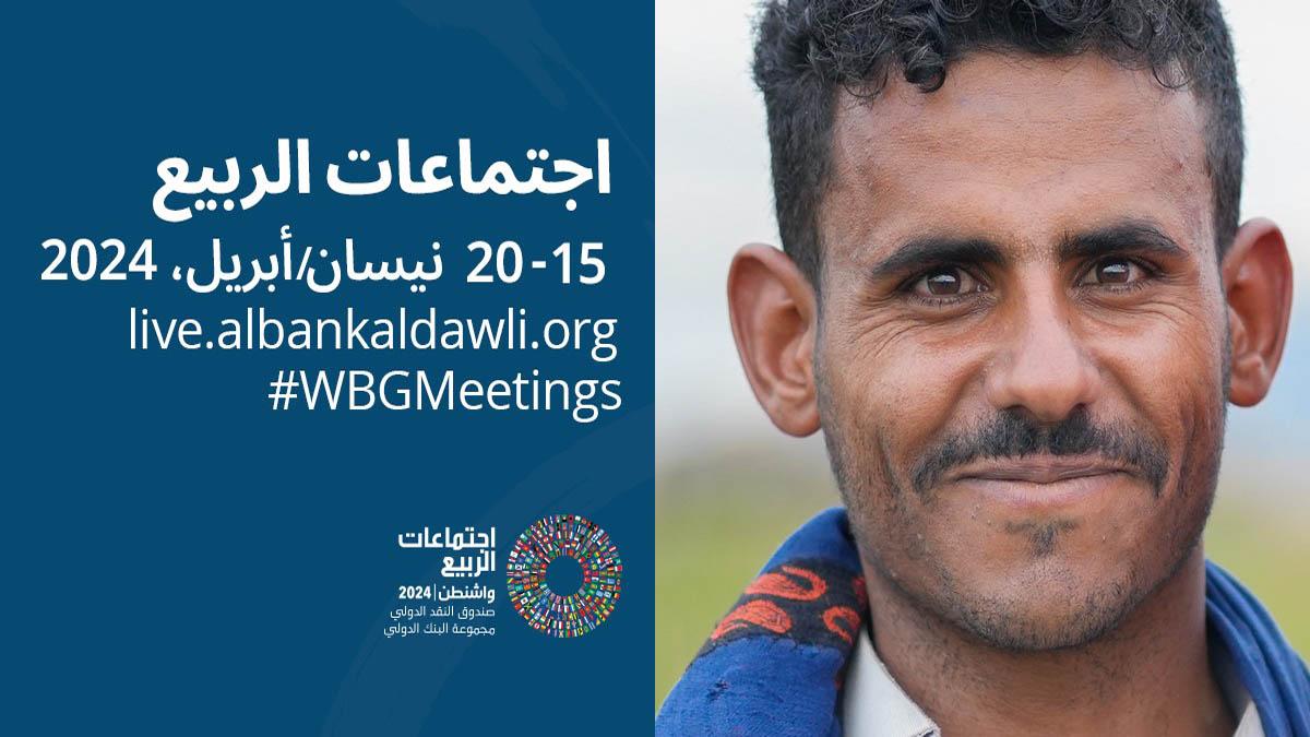 شارك الحدث- وشاهد إعادة الفعاليات باللغات الإنجليزية والعربية والفرنسية والإسبانية وانضم إلى المحادثات على وسائل التواصل الاجتماعي باستخدام الهاشتاج WBGMeetings#